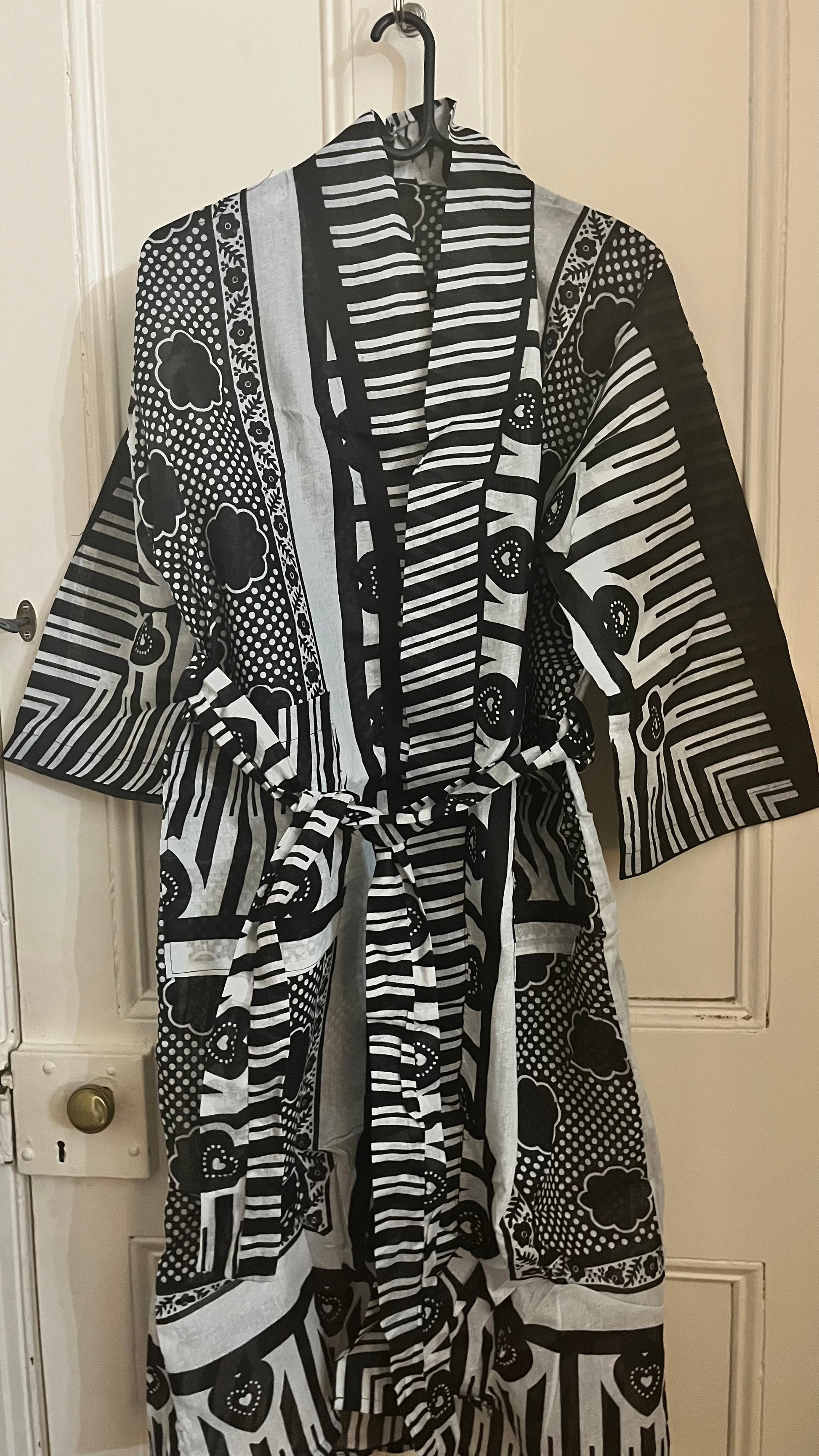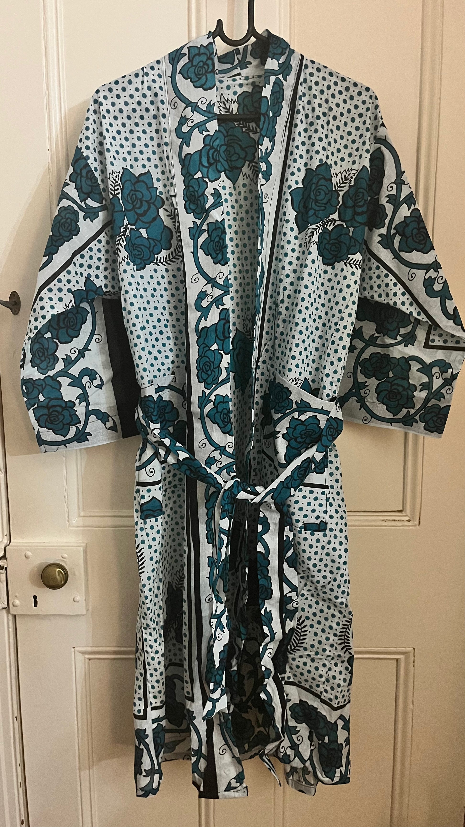 Because each kimono is made from just one kanga, no two garments are ever the same. Colours, motifs and placement vary naturally, making every piece limited edition — and in some cases truly one of a kind.